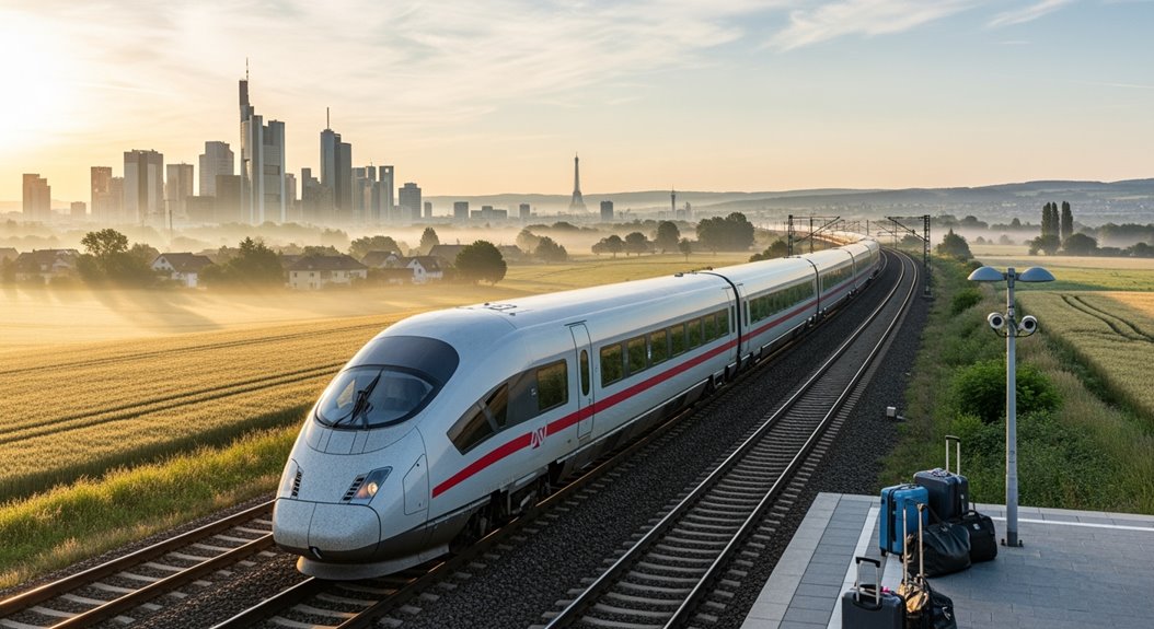 High-speed trains zip between Frankfurt Main Station and Paris Gare de l’Est in just 3 hours 41 minutes. Deutsche Bahn and SNCF operate 17-23 daily departures using sleek ICE and TGV trains. Tickets start at €39.99 for second class when booked early, though premium fares can hit $509.85. Every seat gets WiFi and power outlets, plus generous luggage allowances beat airlines hands down. Book through DB, SNCF, or Trainline up to six months ahead for better deals and smoother journeys.